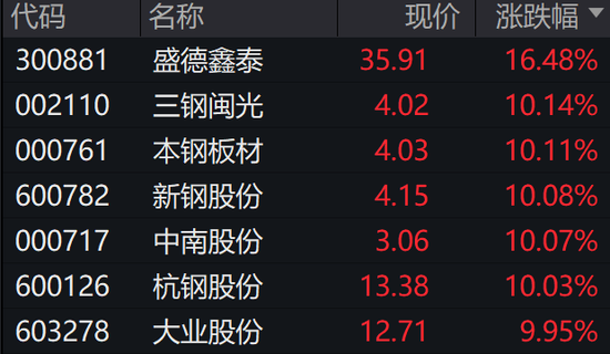 2月26日周三,钢铁板块集体走高,三钢闽光、本钢板材、新钢股份、凌钢股份、华菱钢铁等纷纷涨停。